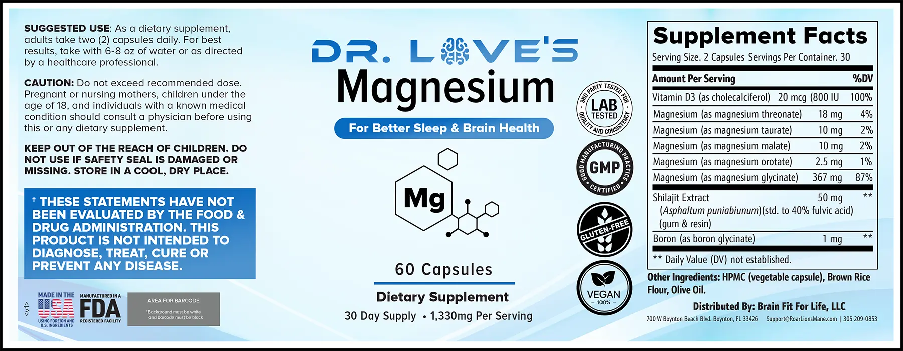 Dr. Love's Magnesium is a proprietary blend of Magnesium L-threonate and Magnesium Glycinate that is theorized to improve both brain health and sleep quality within the first 30 days of use. When you combine these key ingredients with boron, shilajit, and Vitamin-D3, the results (by all appearances) are phenomenal.